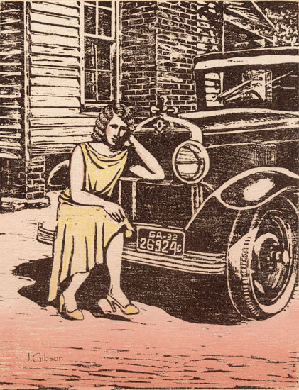 Home Artists Titles Themes Links FAQ Shipping & Returns Wholesale Privacy Contact 1932Woodcut Joyce Gibson 12"X15.75" print on canvas $65.00 back